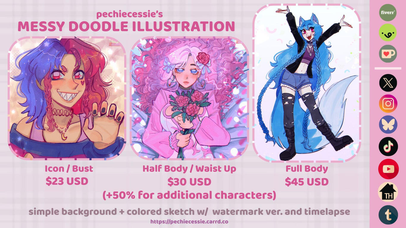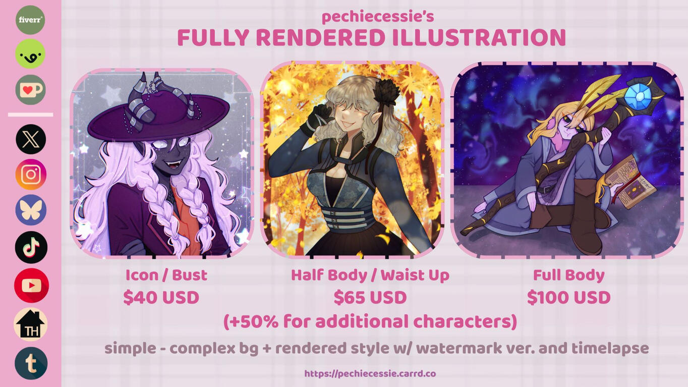 ✧ Please do check the Trello page often to see the progress of the commission.❥❥❥ Rendered Illustrations, Chibi & Doodle Pages: