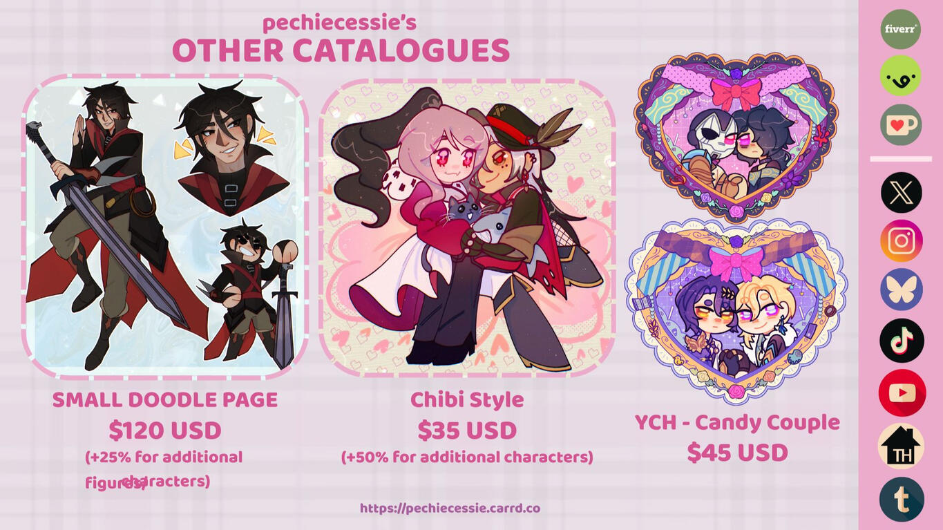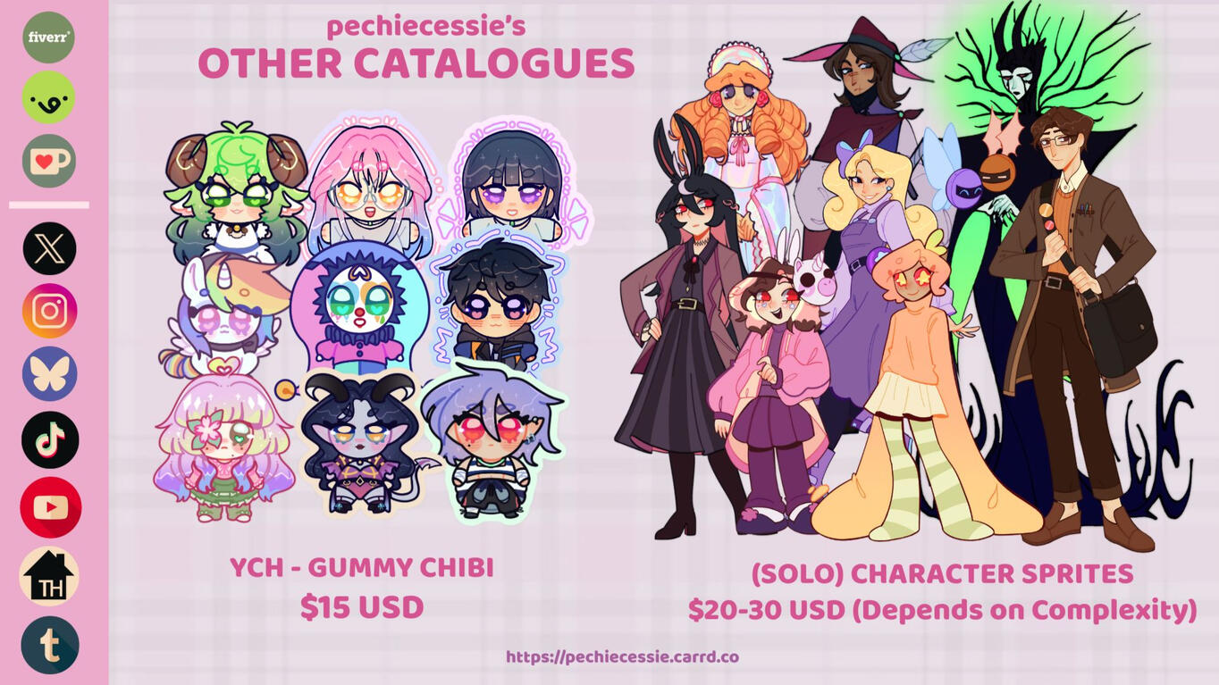 if you're interested on commissioning me, please read each pages carefully especially the terms of service!You can commission me at VGen / Fiverr easily.